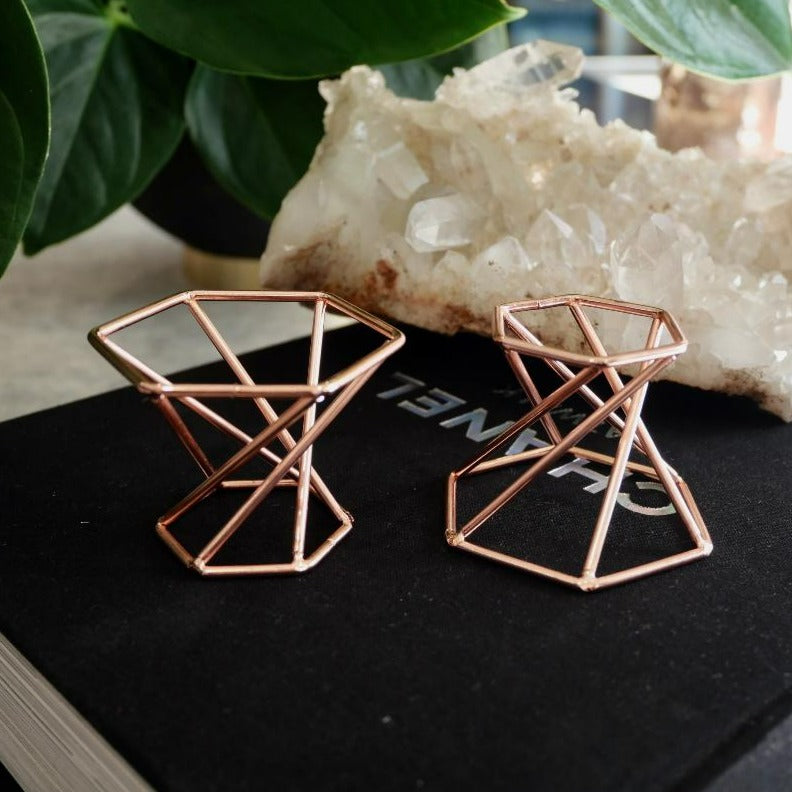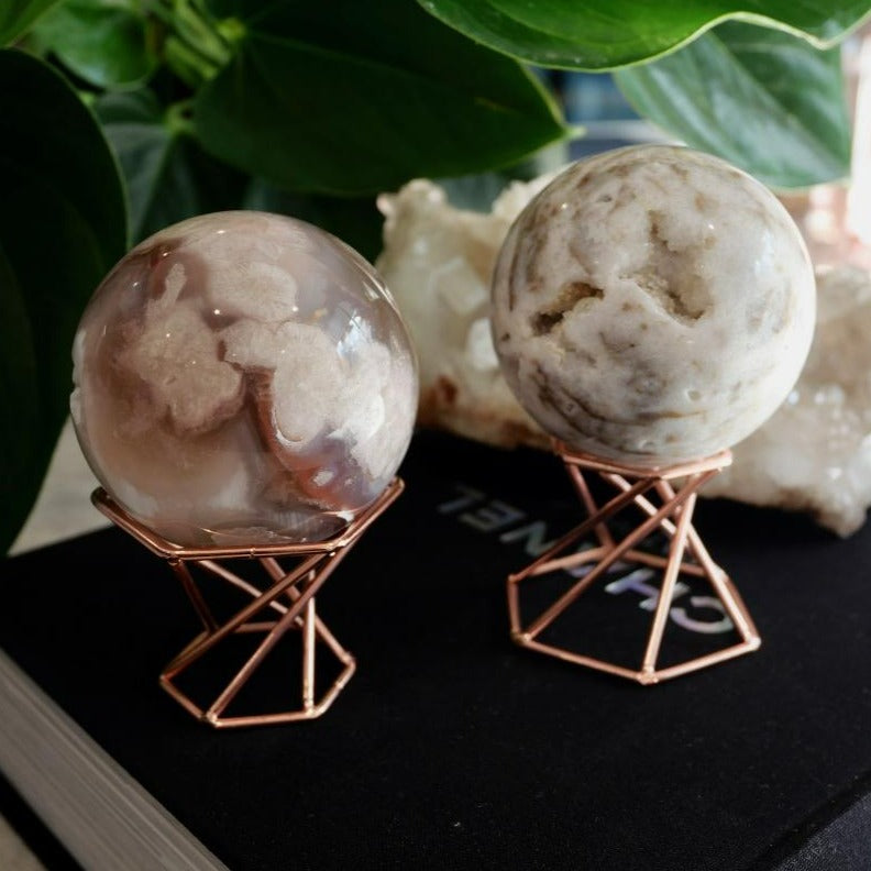 These gorgeous sphere holders can display a variety of different sized spheres. Just flip it over using the larger opening for larger sized spheres and the smaller opening for smaller sized spheres.