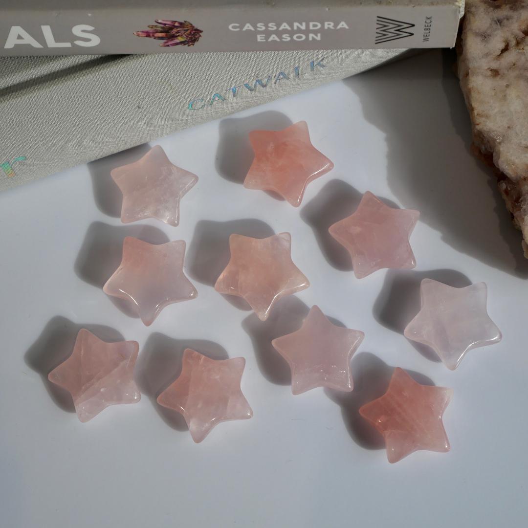 Such beautifully carved Rose Quartz Mini Stars. They would look stunning in a crystal bowl or Trinket Bowl next to your bedside table, coffee table or study.