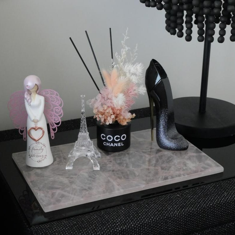 Bring that Wow statement piece into your home. Display your candles, vases or use on your bedside table to pop your crystals, perfume or jewelry on for that luxe touch. Can be used as a decorative piece, or as a cheese platter (using the glass side)