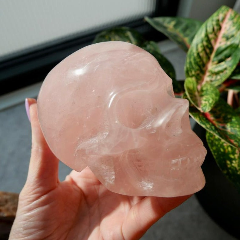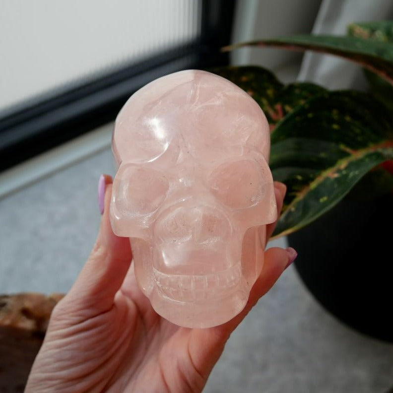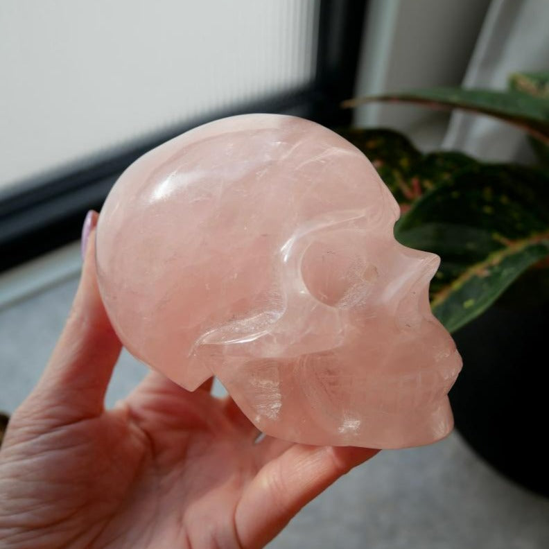 Such a beautifully carved Rose Quartz Skull, would look stunning on the coffee table styled with some books or on the buffet of your home entrance.