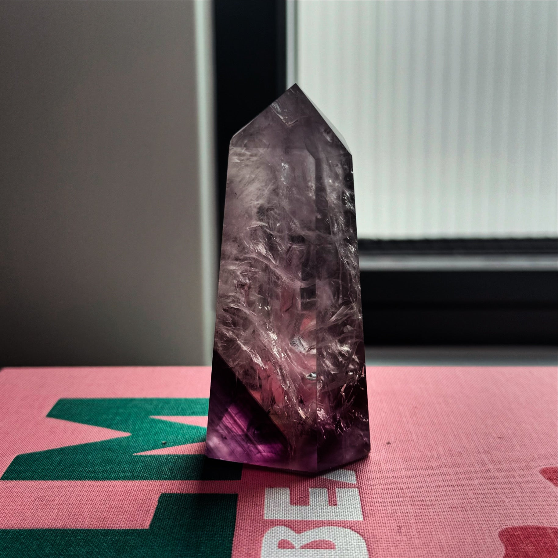 Please note that crystals may have fracture cracks, caves or small holes. They are natural stone from mother nature and are perfectly imperfect. No two crystals will ever be the same. You will receive the exact Smokey Amethyst Tower as pictured.