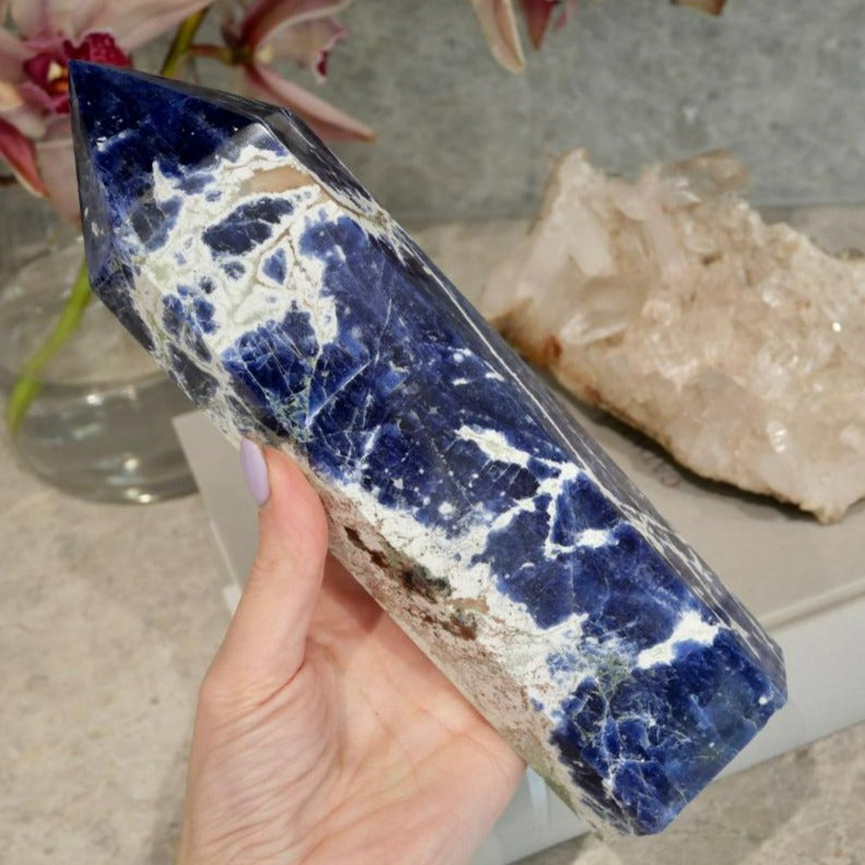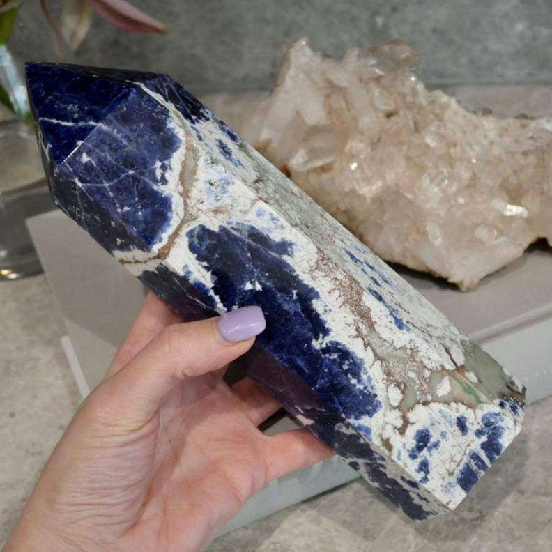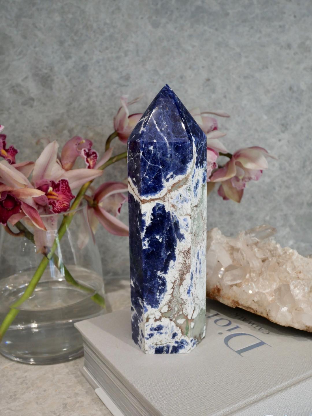 Sodalite is the perfect stone for bringing order and calmness to the mind. Provides rational thinking, ease of panic attacks, enhances ones self esteem and self acceptance. Also known to be a great stone for those who suffer from insomnia. Would make a perfect addition to the bedroom, bedside table or living room.