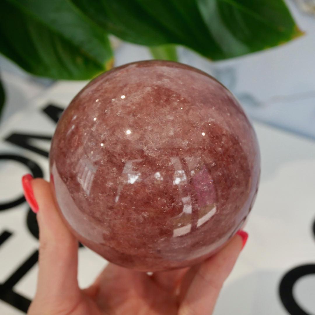 Strawberry Quartz has many similar properties to Rose Quartz. Strawberry Quartz has a darker pigment then Rose Quartz and has the inclusion of iron oxide and goethite. They have such a beautiful sparkle & look amazing popped on a gorgeous stand to display in your home.