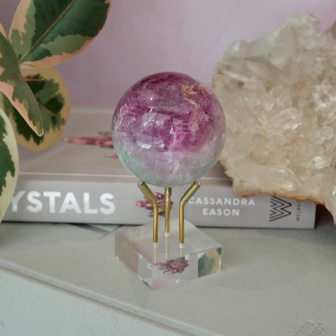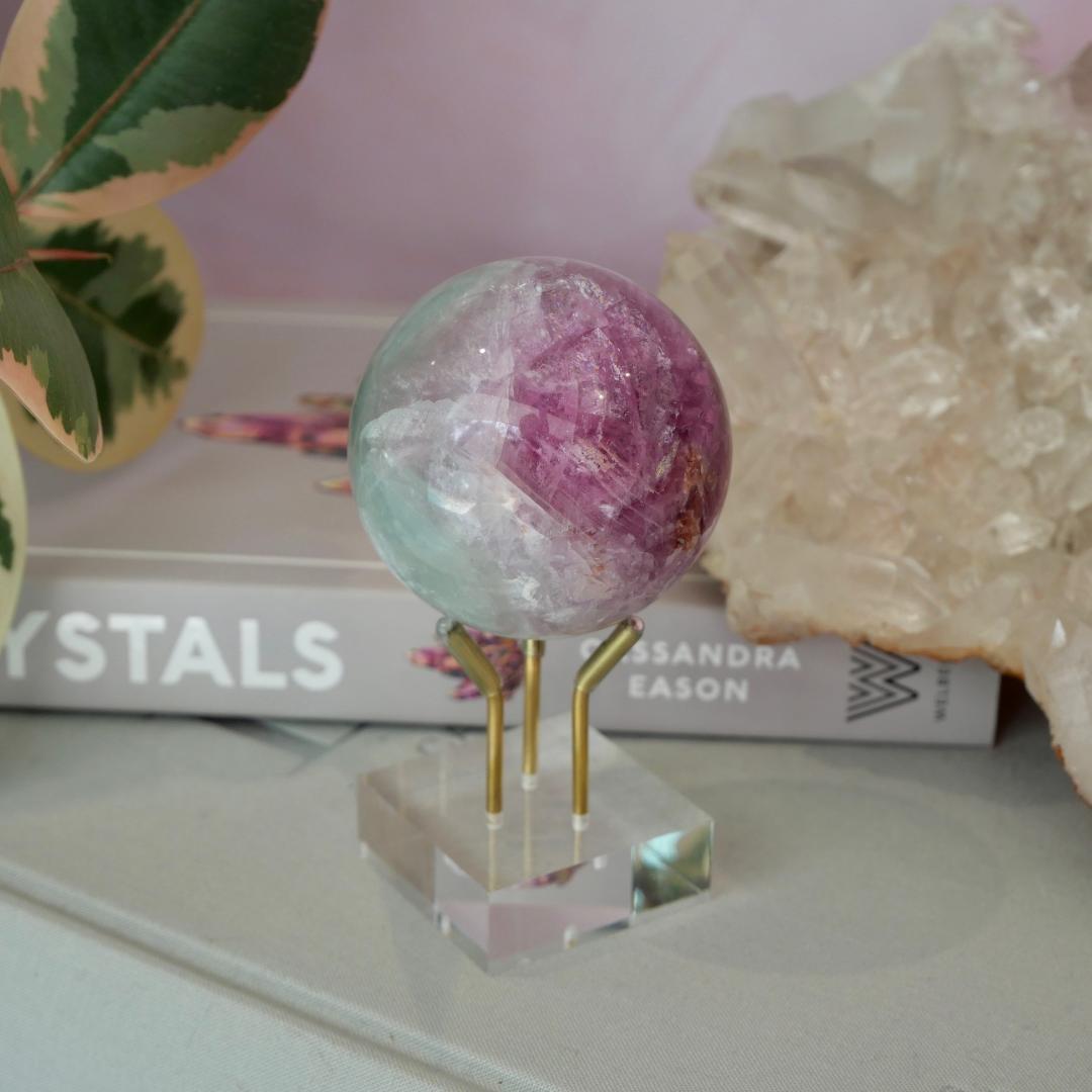 Wow!!! How amazing is this Watermelon Fluorite Sphere, quite a rare find. Put this near the sunshine and let it come to life. Stunning! Like the other variations of Fluorite, Watermelon