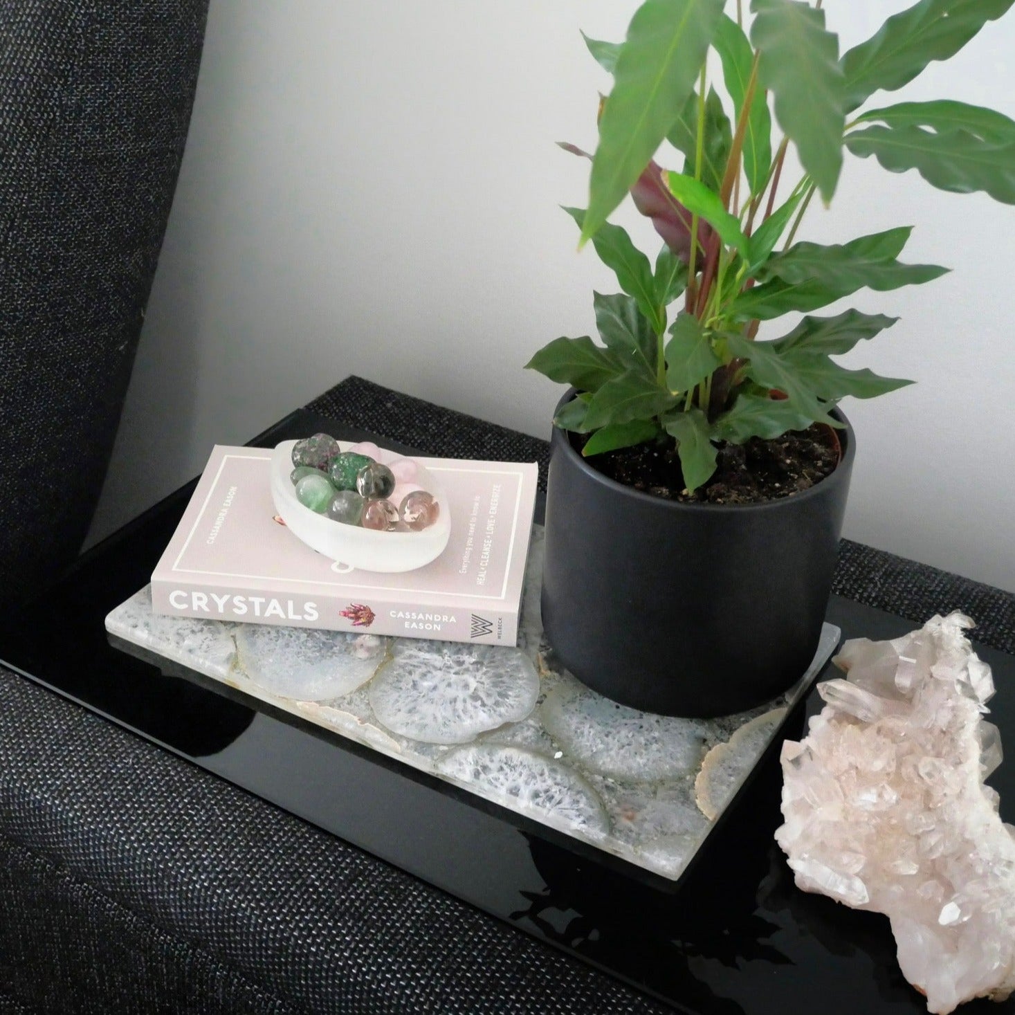 Please note that with all crystal, there may be fracture cracks, small caves or holes within your piece. They are a natural stone, no two platters will ever be the same. Each piece is unique in its own way. They are hand cut and polished.