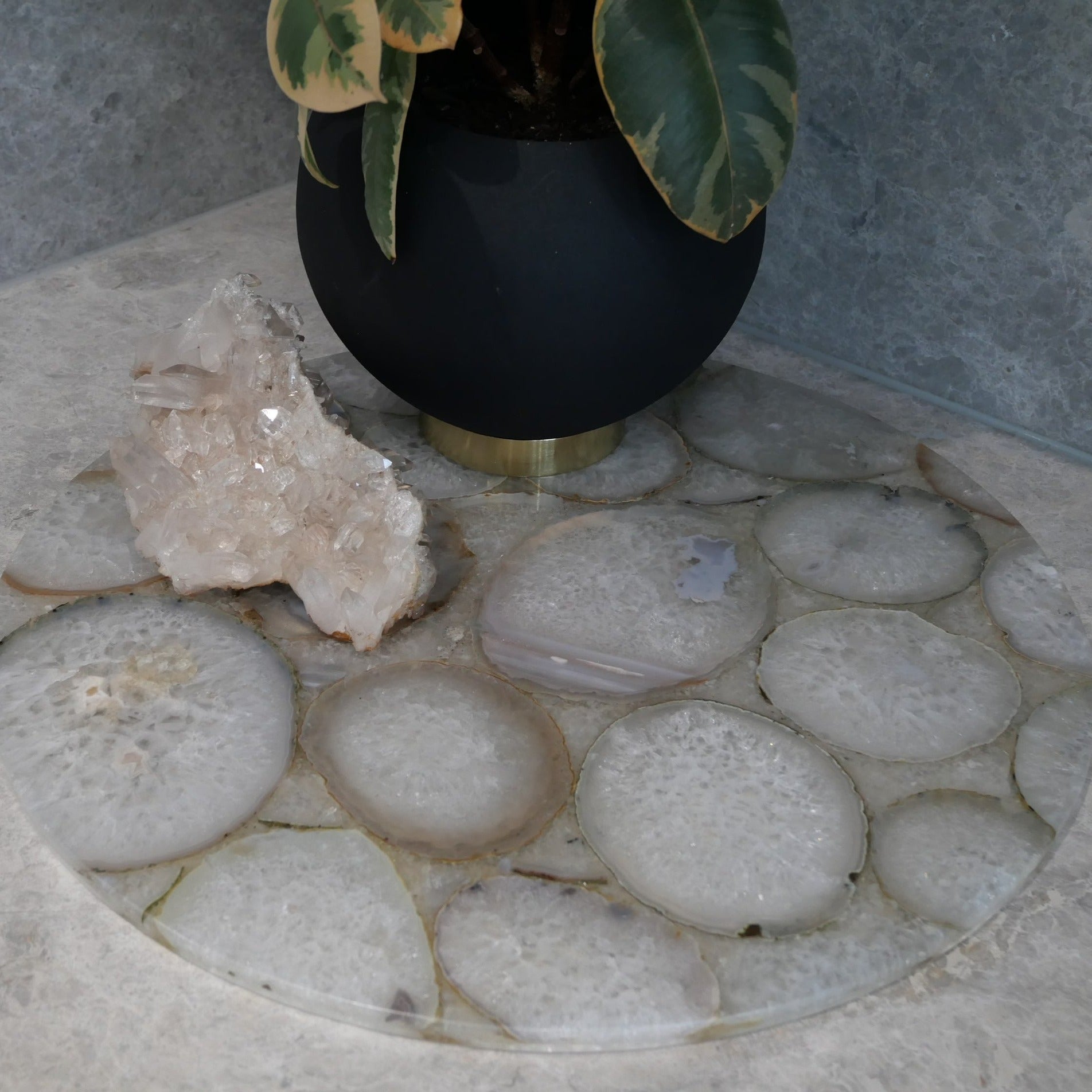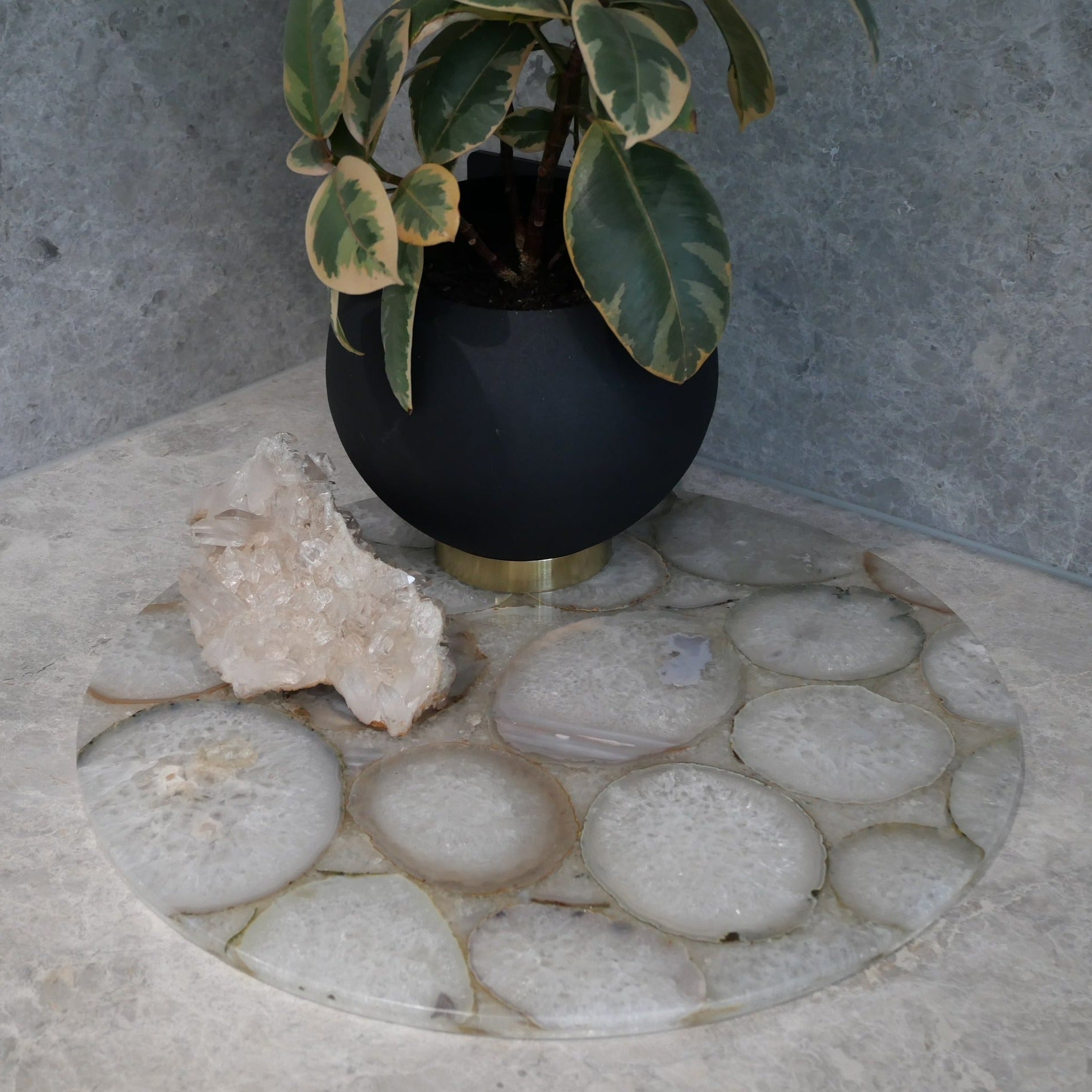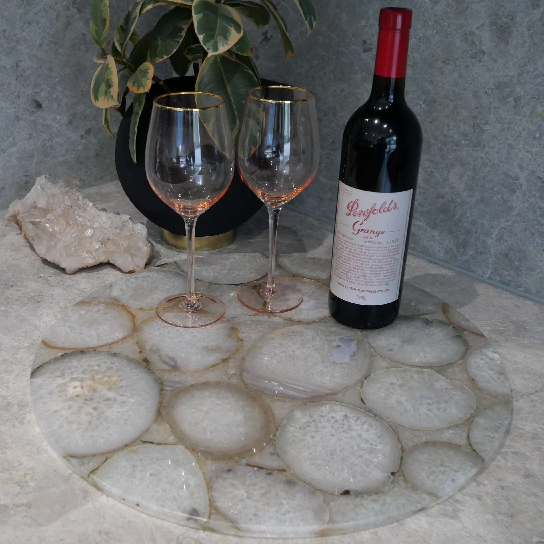 Measurements: 450mm Round Diameter, 10mm Thickness. 5mm Crystal, 5mm Glass.